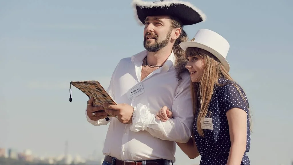Выездные квесты — это праздник для взрослых. В наших играх участники взаимодействуют не с предметами, как в квест-комнате, а друг с другом. В офис, ресторан или на пикник приедет ведущий с игрой и реквизитом, и коллеги на пару часов перевоплотятся. Например, в пиратов.